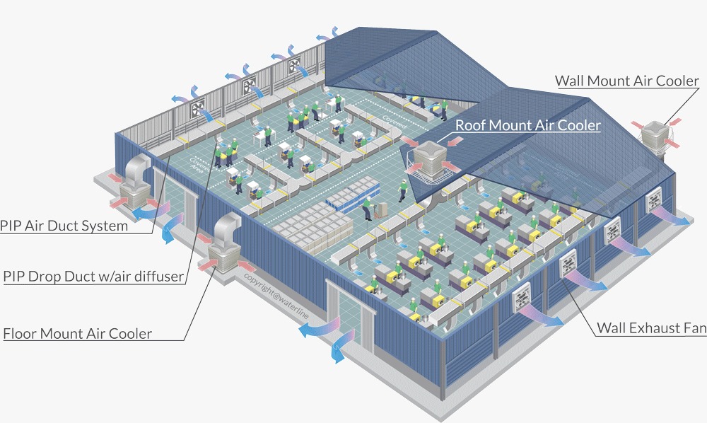 Ventilation in factories is one of the most important issues in terms of both the health of the employees, the protection of the structural integrity of the building and the continuation of production. Industrial fans are used for factory ventilation. Different ventilation systems can be used in factories depending on the area of use. When choosing a factory ventilation fan, the area and processes to be used should be taken into consideration.